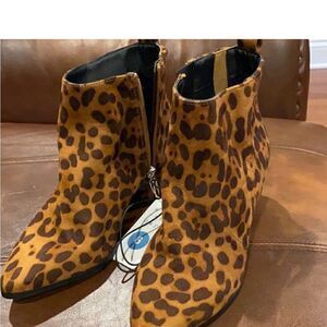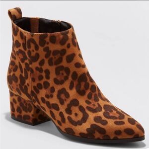 A New Day Womens Valerie Ankle Boots Booties Brown Microsuede Leopard Zip NWT