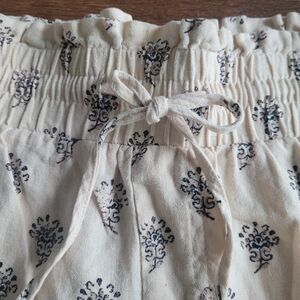 A New Day Womens XL Linen Blend Shorts Paperbag High Rise Pull On Beige Print