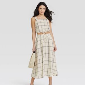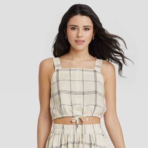 A New Day Womens Linen Blend Tie-Front Faux-Button Tank Top Cream Size XL NWT