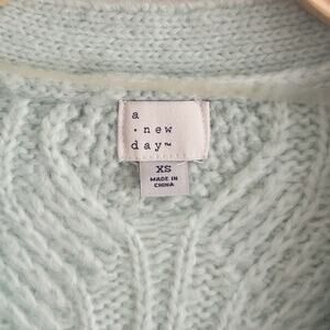 A New Day Wool Blend Fisherman Mint Green Cardigan Sweater Size XS