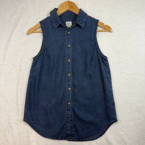 A New Day XS Denim Sleeveless Buttoned Top Casual Boho Resort Capsule Spring