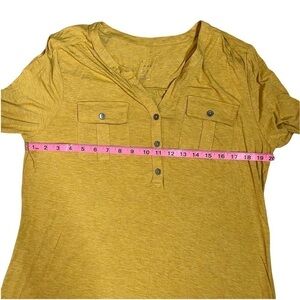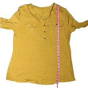 A New Day Yellow Henley Blouse Large V Neck Roll Tab Sleeves Pockets EasyFit