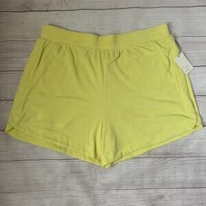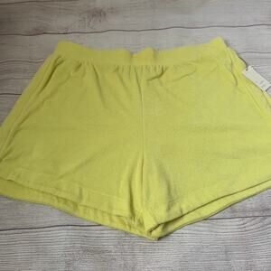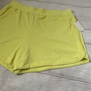 Yellow terrycloth shorts by A New Day. These shorts are a soft towel-like material. They have an elastic waistband and short petal slits on both sides of the legs. They are NEW, with tags. Size 1X.