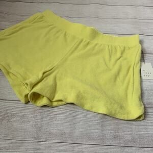 Yellow terrycloth shorts by A New Day. These shorts are a soft towel-like material. They have an elastic waistband and short petal slits on both sides of the legs. They are NEW, with tags.