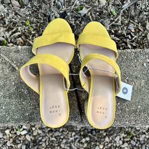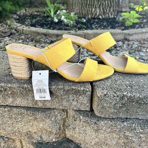 A New Day Super Cute yellow heeled sandals. Straw detail on the heels. Womens size 9. Smoke free home! New with tags.