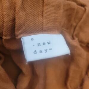A New Day brown high-rise pleated shorts size Large. These shorts measure 17" long, 16" across the waist, 3-1/2" inseam and 14" across each leg opening. This item shows light signs of wear.