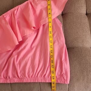 A New Day bubblegum pink barbiecore one ruffled shoulder top size large