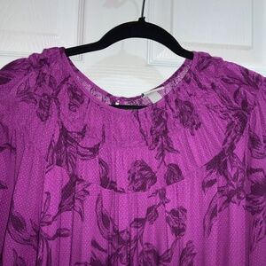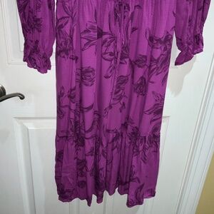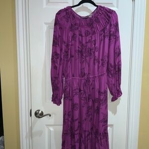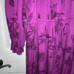 A New Day long sleeve tiered floral midi dress Sz XXL ruched neckline