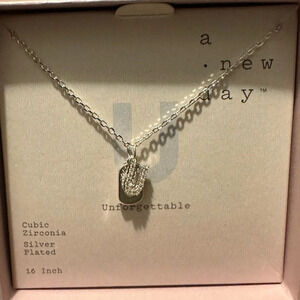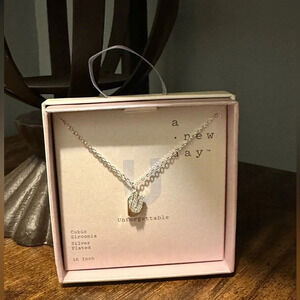 NIB inspirational necklace “U” for unforgettable 16” silver plated chain cubic zirconia