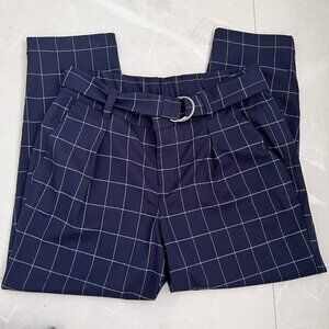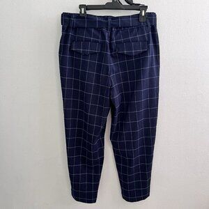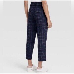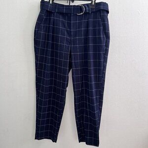 A New Day plaid Pants High Rise Tapered Ankle Size 14 Navy Blue Belted NEW