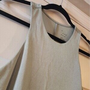 A New Day stretchy green ribbed high neck tank with slight shine L