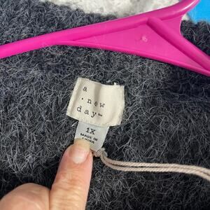 A New Day knit sweater blouse shirt women’s size 1x plus size chunky nubby charcoal gray very warm heavy sweater unworn with tags attached unstructured oversized but shorter length