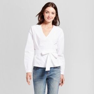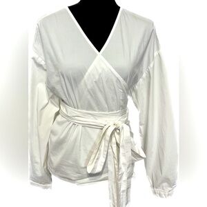 A New Day white 97% cotton 3% spandex wrap top with long attached belt. Boho XXL