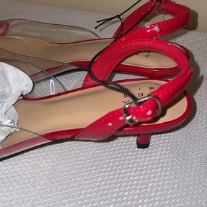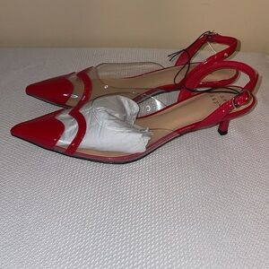 A New Day women’s 8.5 heels Slingback 2” shiney patent Red clear Heart Eleanor