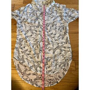 A New Day women's sheer dog patterned high low collared button front blouse sz S