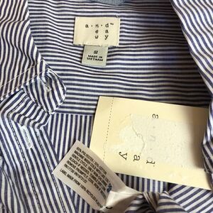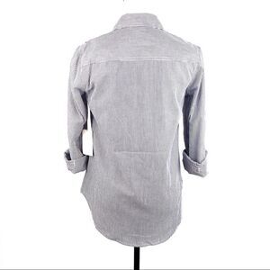 A New Day Blouse Blue White Stripe Top Roll Up Sleeves Button Down Size Small