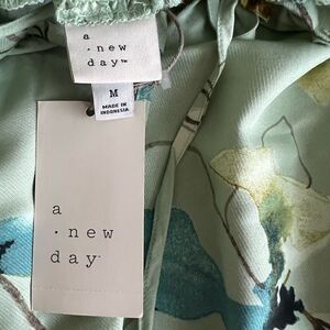 A New Day Light Green Floral Long Sleeve Blouse Medium