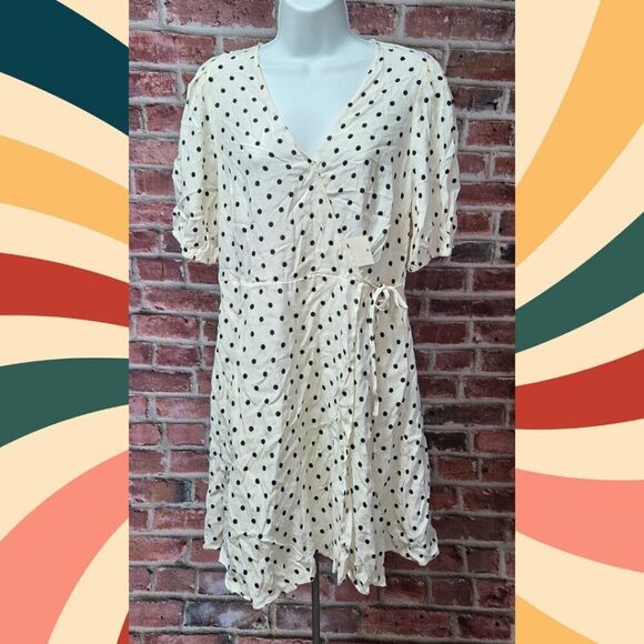 A New Day Polka Dot Wrap Dress Medium V Neck Short Sleeve Knee Length Off White