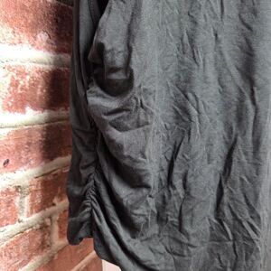 plus size black t-shirt, side ruched tee 2X, round neck rayon top, black short sleeve stretch shirt, a new day t-shirt 2X, comfy flattering top, soft rayon blend shirt, casual plus size tee, ruched top for curvy women, everyday black tee
