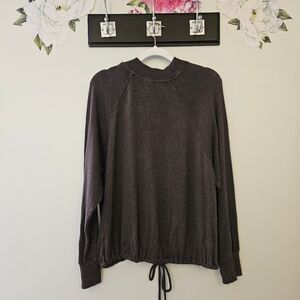 Soft mock neck sweater with drawstring at waist. Lightweight enough to be a transition piece.