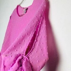 Pristine conditions! Ruffled long sleeve top, color looks between a dull purple/ pink. I wasn’t able to find a picture of the actual shirt so the first one is a similar shirt just too sure what it looks like on.