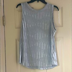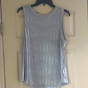 A New Day Sleeveless Light Blue Patterned Top! Elevate your wardrobe with this stylish sleeveless blue top. Perfect for any occasion, its unique pattern adds a touch of elegance.