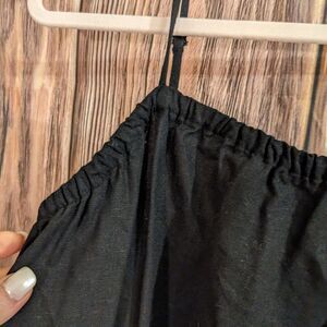 Linen/Rayon dress with pockets Adjustable straps Very good pre-owned condition See pics for approximate measurements
