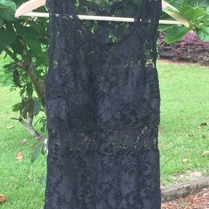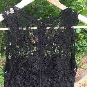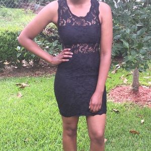 This lace edgy dress will steal the night. The exposed upper back gives a modern look with the help of the exposed upper belly adds a tint of sex appeal but the high neckline gives it that touch of modesty. It's in good condition and has been worn twice.