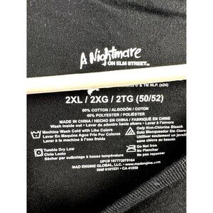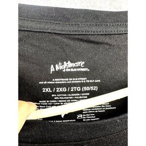 horror t-shirt, black shirt, men's tee, graphic tee, cotton blend, short sleeve, movie merch, large size, horror fan, black and red, comfy fit, machine washable, nightmare on elm street