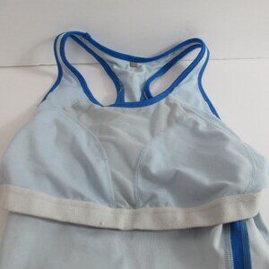 A+ Nike Fit Dry Activewear Top Women Medium Gray Blue Mesh Swoosh Logo Racerback.
