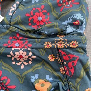 The A Pea in the Pod Maternity Swimsuit is a two-piece bikini designed specifically for expectant mothers in size medium. The vibrant multicolor design with a beachy, bohemian theme makes it perfect for relaxing by the water or lounging at a resort. The high-quality construction and comfortable fit ensure a stylish and secure swimwear option for women looking to enjoy time in the sun in comfort and style.