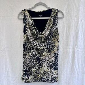 A PEA IN A POD MATERNITY SLEEVELESS TOP SIZE L 💯% SILK BLACK WHITE YELLOW‎