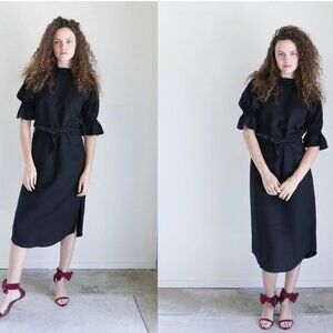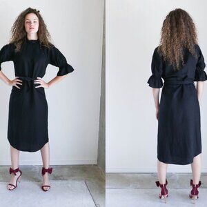 ❤️ A PIECE APART YERBA SANTA DRESS BLACK LINEN PUFF SLEEVES BOHEMIAN HIGH NECK
