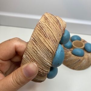 A Pair Vintage Serrv Candle Holder Eggs On Nest Made in Peru