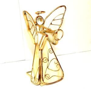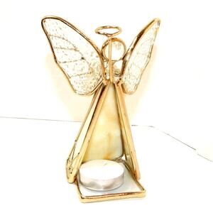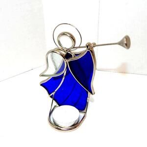 A Pair of Stained Glass Tea Light Trumpeting Angels