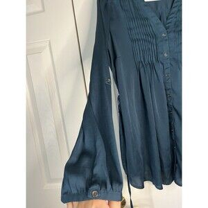 The A Pea In A Pod tunic top is a stylish and comfortable option for pregnant women in size small. This green blouse features a flattering V-neckline and a tunic style, perfect for everyday wear during pregnancy. The brand specializes in maternity clothing, ensuring both style and functionality for expectant mothers.