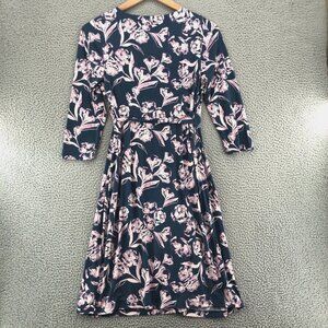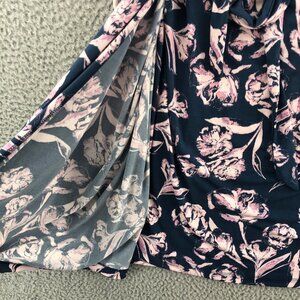 A Pea In The Pod Dress Womens Medium Maternity Blue Floral Wrap Knee 3/4 Sleeve