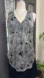 A Pea In The Pod Black & White Leaf Print Silky Feel Sleeveless Blouse with 1/4 Hidden Mother-of-pearl button V-Neck