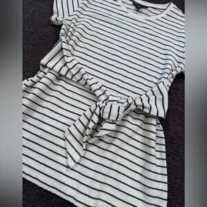 Maternity A Pea In The Pod striped black and white top with adjustable waist tie. Beautiful style and fit made to show your growing belly. Amazing quality and in great condition. Size S.