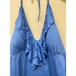 A Pea In The Pod Maternity Blue Tie Neck Ruffle One Piece Swimsuit