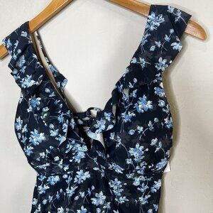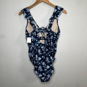 A Pea In The Pod Maternity Swimsuit Black Ruffle Floral One Piece Size Large NEW