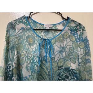 A Pea In The Pod Women's Blue Sheer Silk Floral Maternity Top Blouse - Size S/M