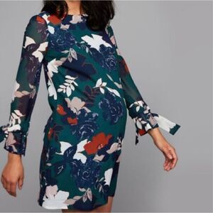 A Pea In The Pod green floral long sleeve modest chiffon maternity dress large