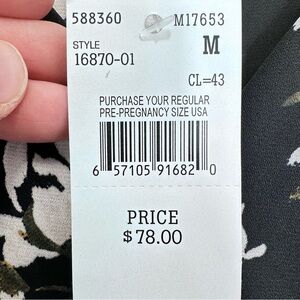 A Pea in The Pod Black Floral Popover Blouse Career Office Casual Size M NWT
