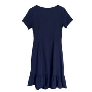 A Pea in the Pod Dress sz LARGE Side Tie Ruffle Hem Minidress Navy Blue Stretch