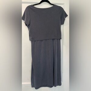 A Pea in the Pod Grey Tiered Textured Stretch Maternity Nursing Dress Size Small