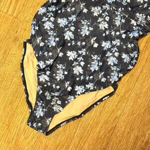 A Pea in the Pod Maternity Blue Floral Ruffle One-Piece Swimsuit Size Small