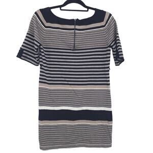 A Pea in the Pod Maternity Knit Sweater Medium Stripes Black, Tan, Short Sleeve. Viscose, polyester