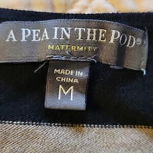 A Pea in the Pod Maternity Knit Sweater Medium Stripes Black, Tan, Short Sleeve