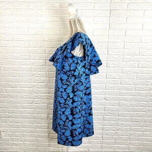 Blue and black tropical leaf print ruffled one shoulder maternity dress by A Pea in the Pod. Size Extra Small. Fully lined. New with Tags.